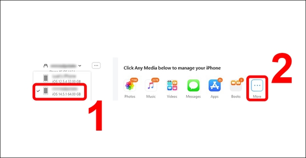 Bước 1: Kết nối cả 2 iPhone vào máy tính, Macbook bằng cap USB.![]()