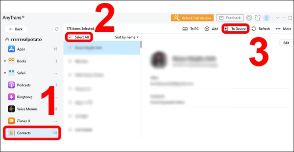 Dùng AnyTrans để đồng bộ danh bạ iPhone