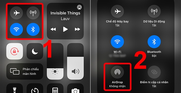 Bước 1: Vuốt từ dưới lên để mở Bảng điều khiển nhanh > Nhấn và giữ vào ô đầu tiên và chọn vào AirDrop.![]()