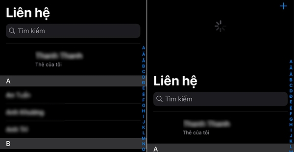 Bước 5: Mở ứng dụng Danh bạ và reload (vuốt xuống để làm mới). Sau một vài phút, danh bạ từ iPhone cũ sẽ xuất hiện trên iPhone mới.![]()